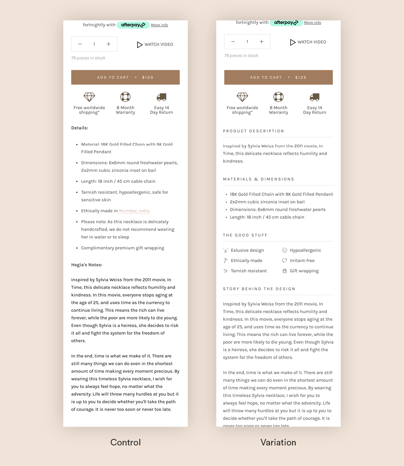 By improving the product page experience, users were able to scan the information quicker and find the relevant information easily.